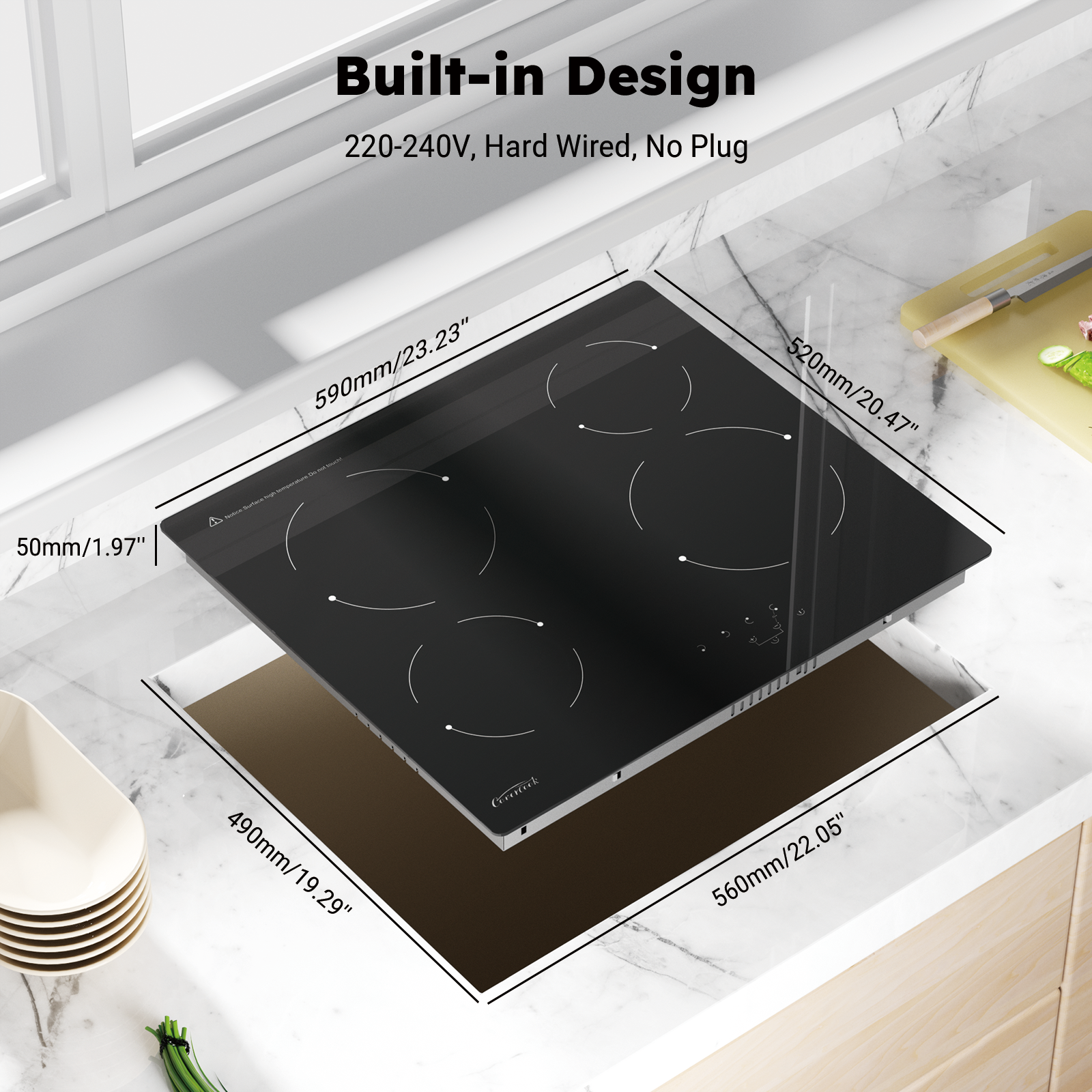 COVERCOOK Electric Ceramic Hobs,60cm Built-in Cooktop, Black Glass, 6000W